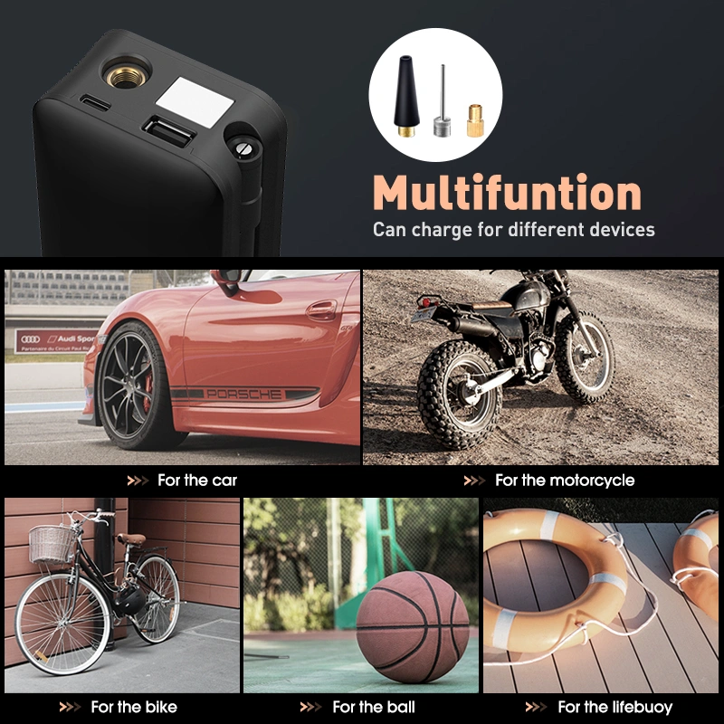 - רב תכליתי: ניפוח צמיגי רכב, צמיגי אופניים וכדורים ללא מאמץ.