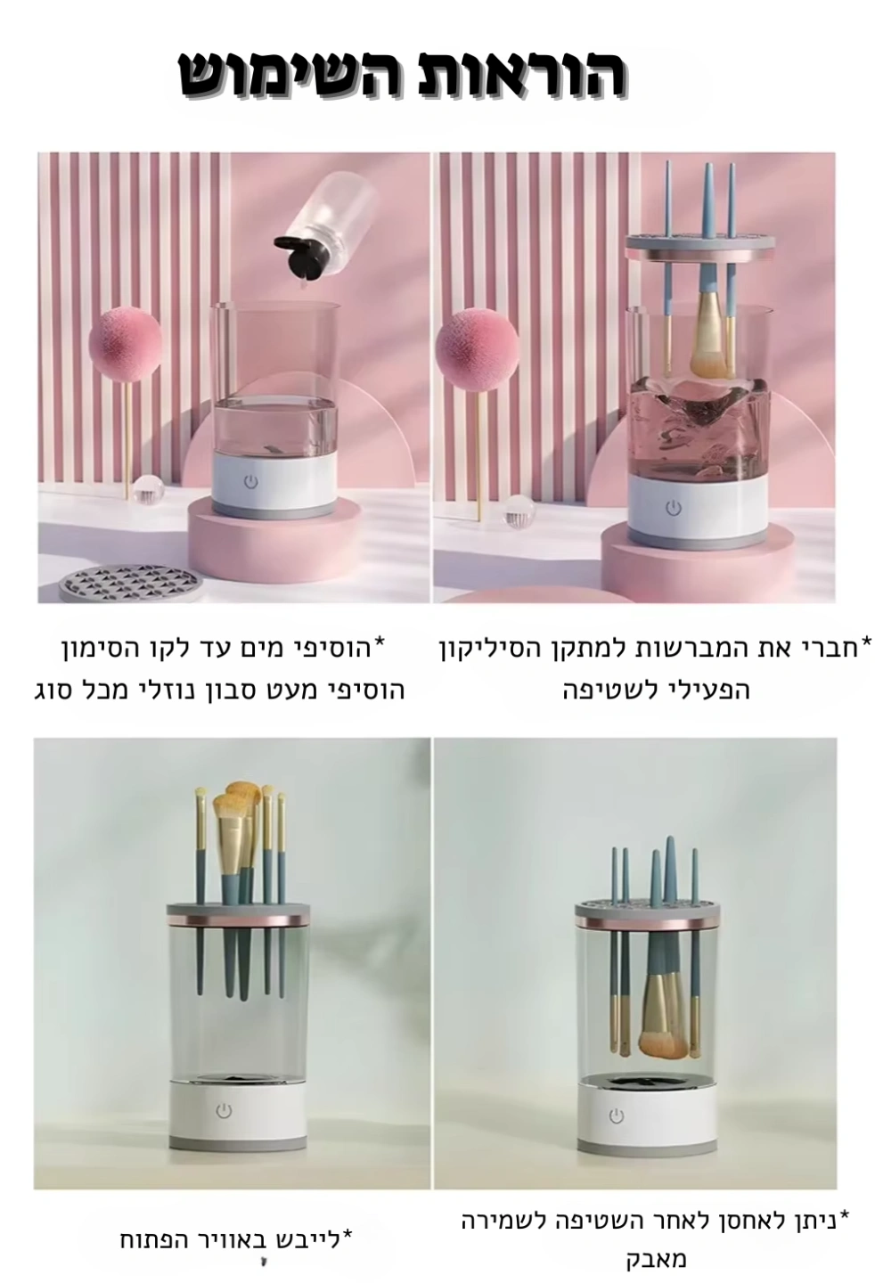 המכשיר כולל מצב ניקוי וייבוש מהיר, כך שתוכלו להשתמש במברשות שלכם מיד לאחר הניקוי!